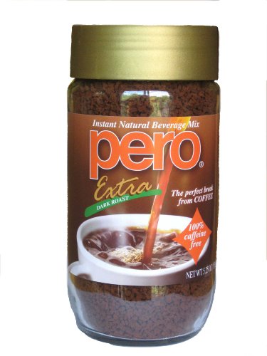 PERO EXTRA - dark roast captures the distinctive, rish flavor of French roast coffee in a naturally caffeine free instant bavarage.DIRECTIONS: Put one heaping teaspoon into a cup. Add hot but not boiling water, stir. Add milk and sugar to taste if desired.PERO is 100% natural and caffeine free. It will not cause sleeplessness, high blood pressure or stomach problems, because it contains non of the stimulants that coffee and tea contain.PERO gives you 95-100 rich tasting servings per container.Ingredients: Malted Barley, Barley, Chicory.Contains barley which is a source of gluten. May contain traces of peanut oil.Product of Switzerland